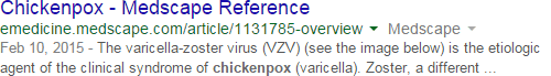 There's another difficulty with telling exactly how many meta descriptions Google has modified – some edits are minor, and some are major. One minor edit is when Google adds some additional information to a snippet, such as a date at the beginning. Here's an example (from a search for "chicken pox"):